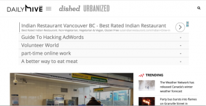 Display ads are graphic/ video displays that are placed on a variety of sites across the Internet (i.e. Websites, blogs, YouTube). Take a look at the giant display ad on the DailyHive website. I am 99% sure I wasn’t searching for “Indian Restaurant Vancouver BC”, nor was I looking for “part-time online work.” To make ads I see more useful, I can go into Google Ads Settings and update my ad preferences.