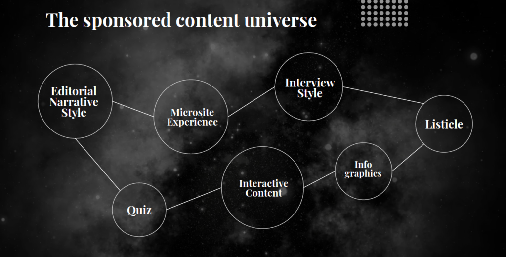 Sponsored content is usually formatted in the same way as editorial, and it falls into the in-feed subgroup, showing up as part of the usual feed. Therefore, it is not intrusive like traditional ads that pop-up when we’re streaming content or tapping through Instagram stories. Instead, it shows up where the reader is already looking for something similar. When it is useful information, we don’t mind that it is sponsored.