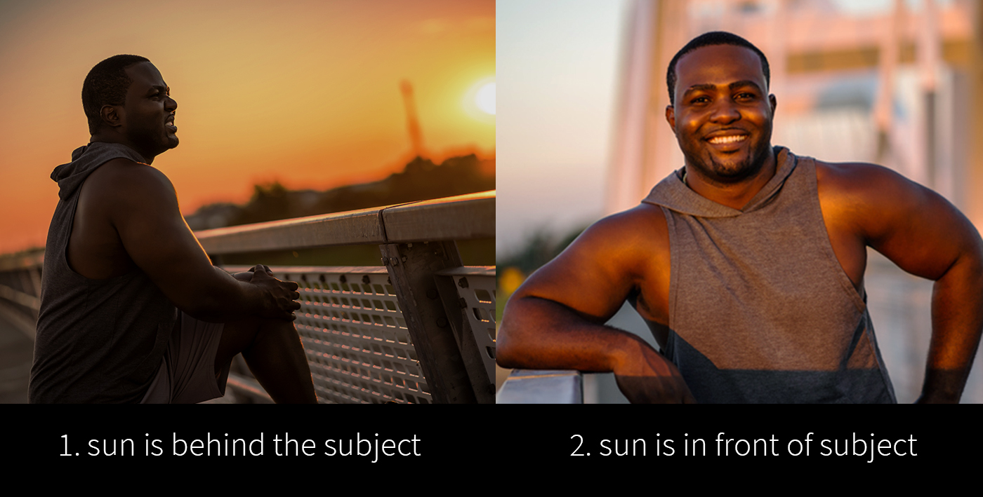 Try taking photos of a friend at sunset, for example. Take a photo with the sun behind them and then take another photo with the sun in front of them (the sun behind your back). You’ll produce two very different images. If your social media image is meant to create recognition of a person or a product, shooting in the same direction of the light ensures the photo will show your subject clearly.